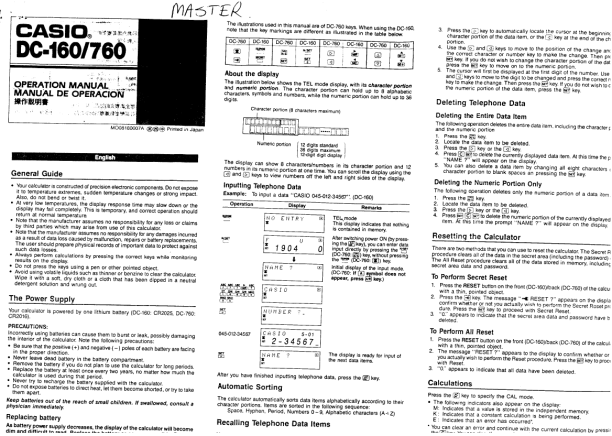 Description of CASIO DC160 Owner's Manual