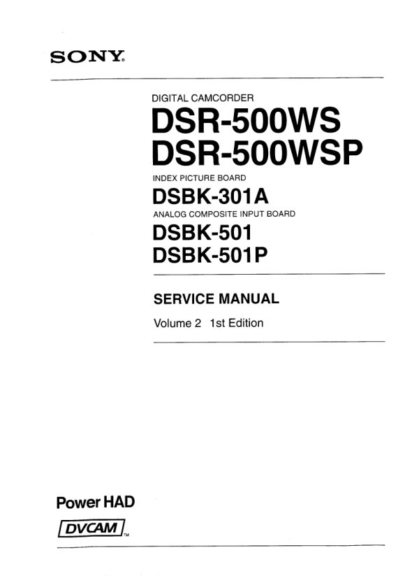 Home >> SONY >> DSR-500WS VOLUME 2 Service Manual