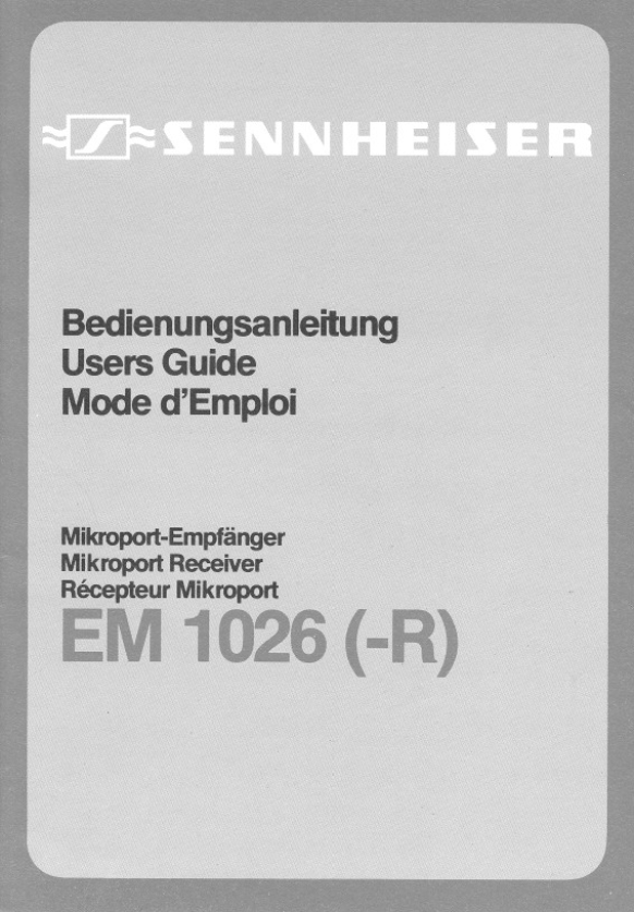 Home >> SENNHEISER >> EM 1026 Owner's Manual