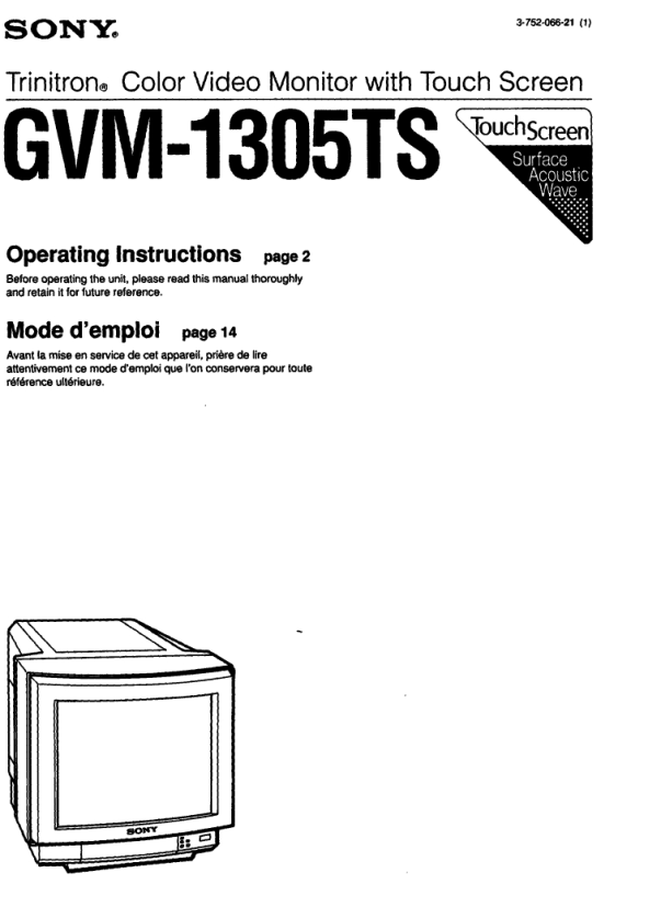 Home >> SONY >> GVM-1305TS Owner's Manual