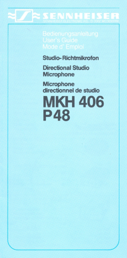Home >> SENNHEISER >> MKH 406 P 48 Owner's Manual