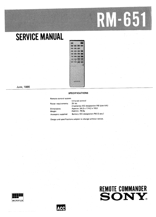 Home >> SONY >> RM651 Service Manual