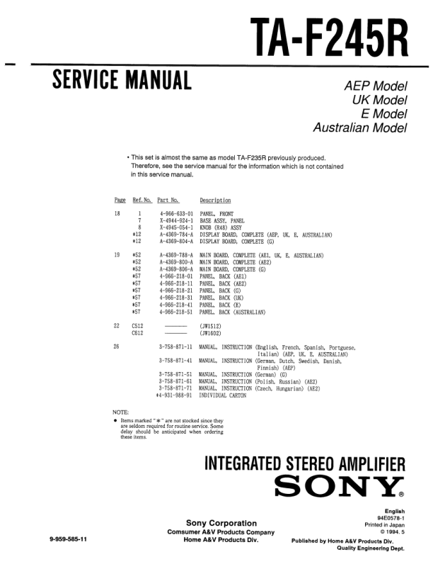 Home >> SONY >> TAF245R Service Manual