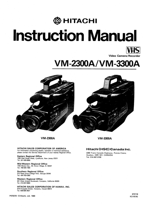 Description of HITACHI VM-3300A Owner's Manual