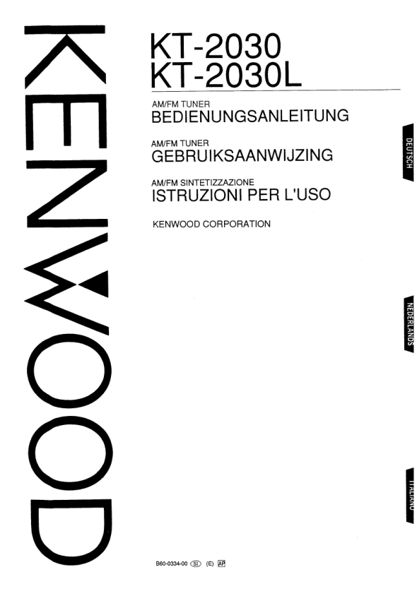 KENWOOD KT-2030L Owner's Manual